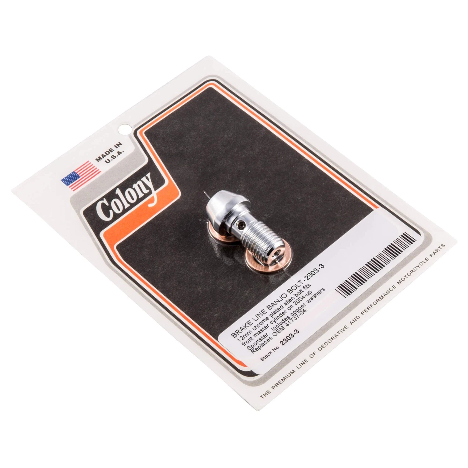 BRAKE LINE BANJO BOLT 12mm chrome plated allen bolt fits front master cylinder on 2004-up Sportster. Replaces OEM 41737-04.