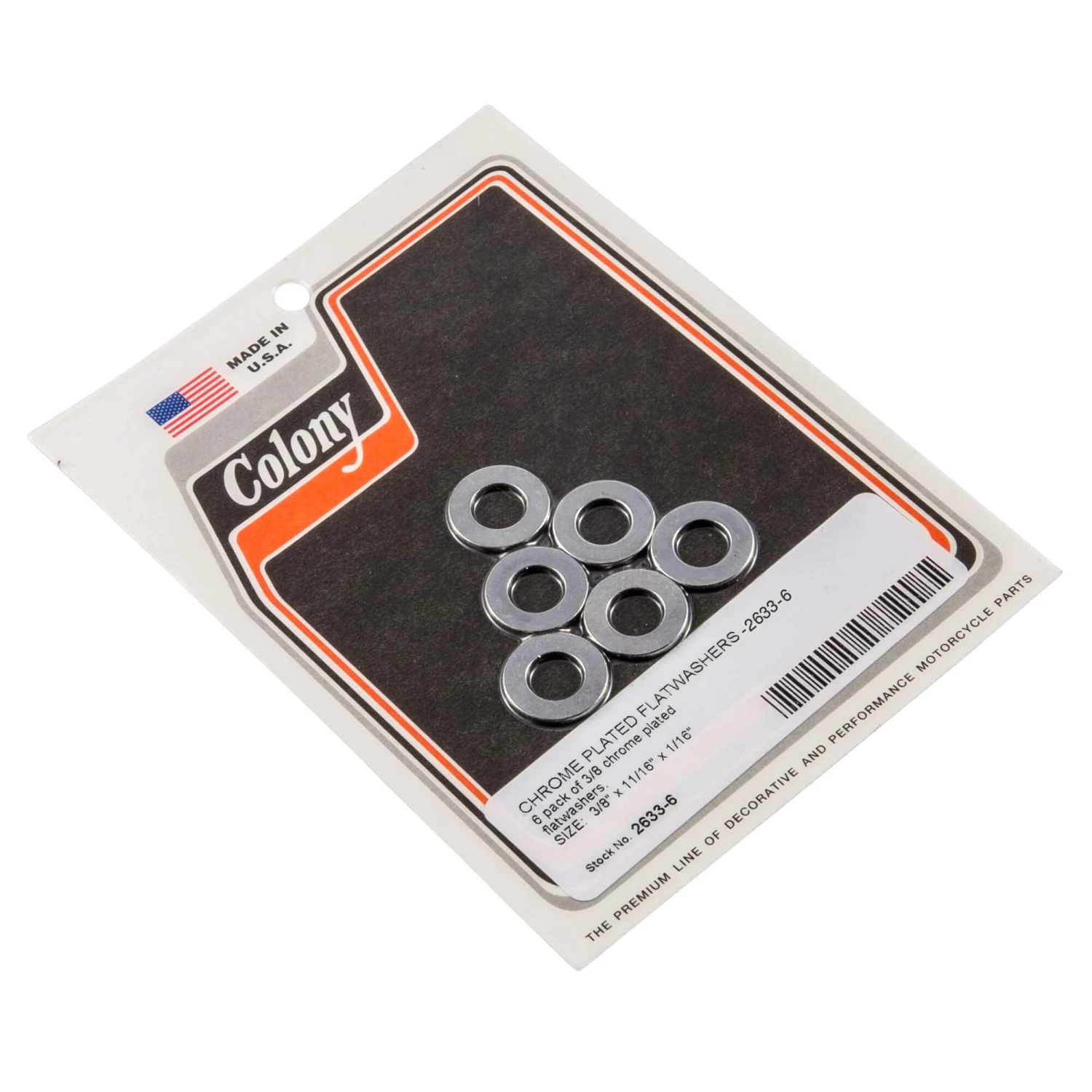 CHROME PLATED FLATWASHERS 6 pack of 3/8 chrome plated flatwashers. SIZE: