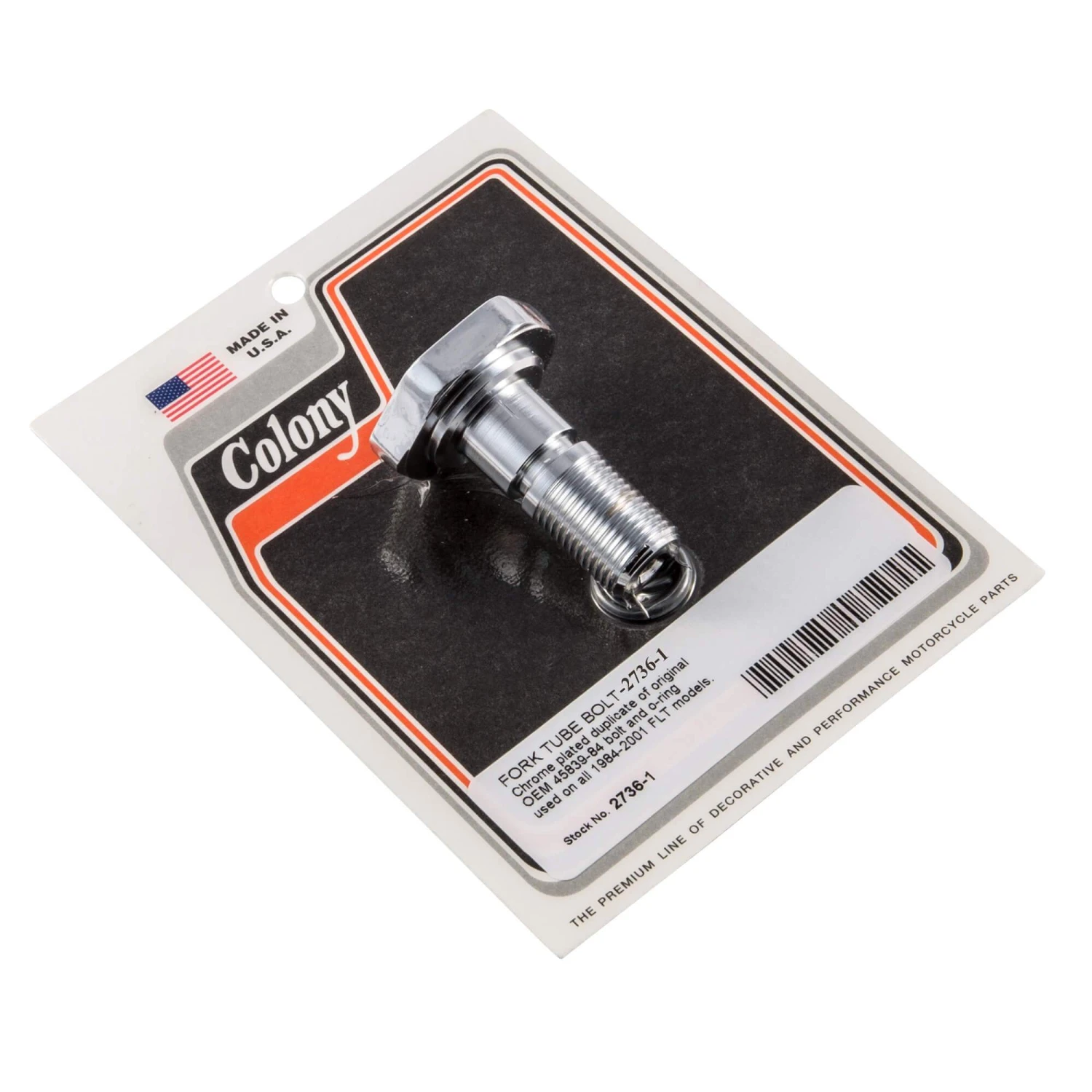 FORK TUBE BOLT Chrome plated duplicate of original OEM 45839-84 bolt and o-ring used on all 1984-2001 FLT models.