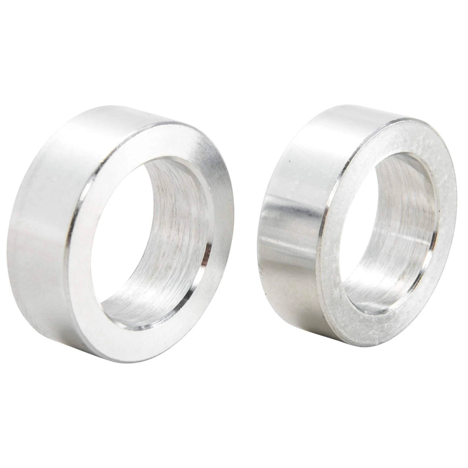 3/8 inch (.375″”) length. Sold as a pair. These perfectly machined aluminum axle spacers are 3/4 inch inside diameter, perfect for spacing out the wheels on your chopper or custom motorcycle. Each spacer is 1.125 inch outside diameter. Made in the USA. Check out more our