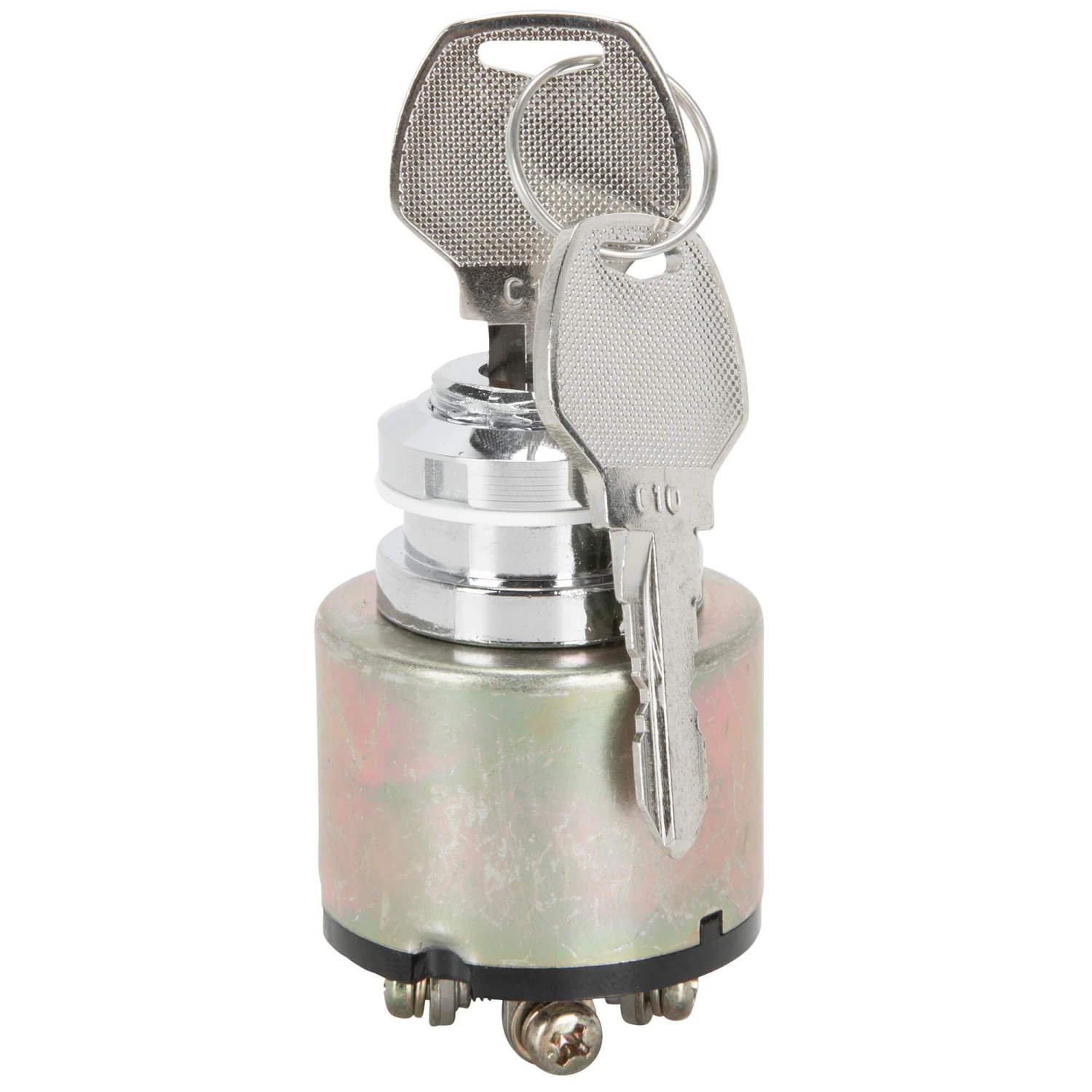 These Quick-Start ignition starter switches have a 3-position Off/On/Start function with an internal spring that returns the key to the On-position, as common in cars. Switches are vibration resistant, include a chromed retaining nut for quick installation and include a matched standard straight key. This switch utilizes a 3/4 inch D-shaped mounting hole.