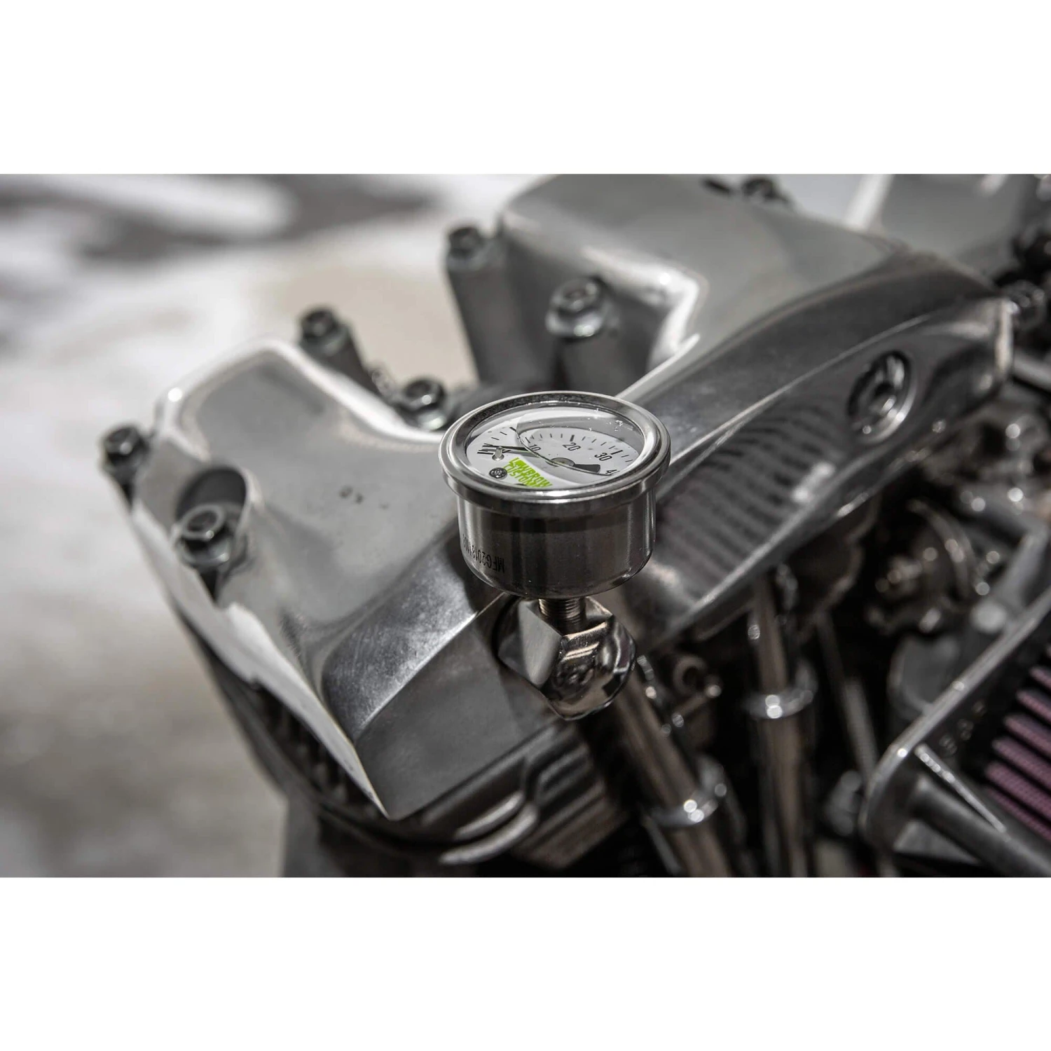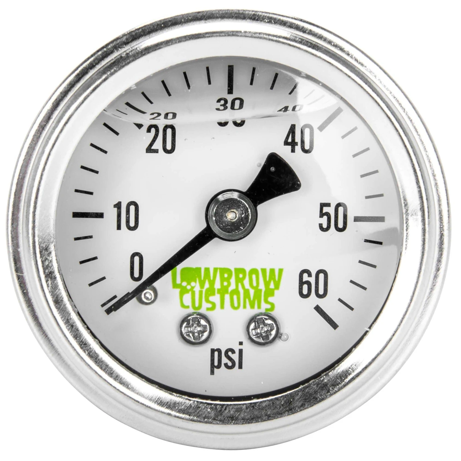 Lowbrow Customs oil pressure gauges are high-quality, with brass internals and a stainless steel housing. 1-3/4″ diameter. Precision made to ISO standards and individually tested, these glycerin filled gauges offer an accurate oil pressure reading on your Harley-Davidson or other motorcycle. They are 1/8 inch NPT thread, and can be used with a variety of oil pressure gauge adapters and fittings available in both chrome or brass. Check out the