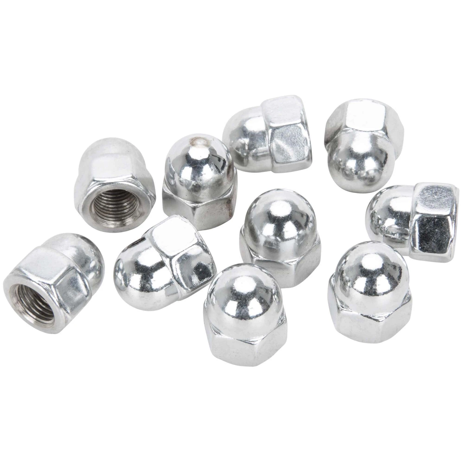CHROME PLATED ACORN NUT Size: 1/2-20 Bag of 10 pieces. Made in the USA.