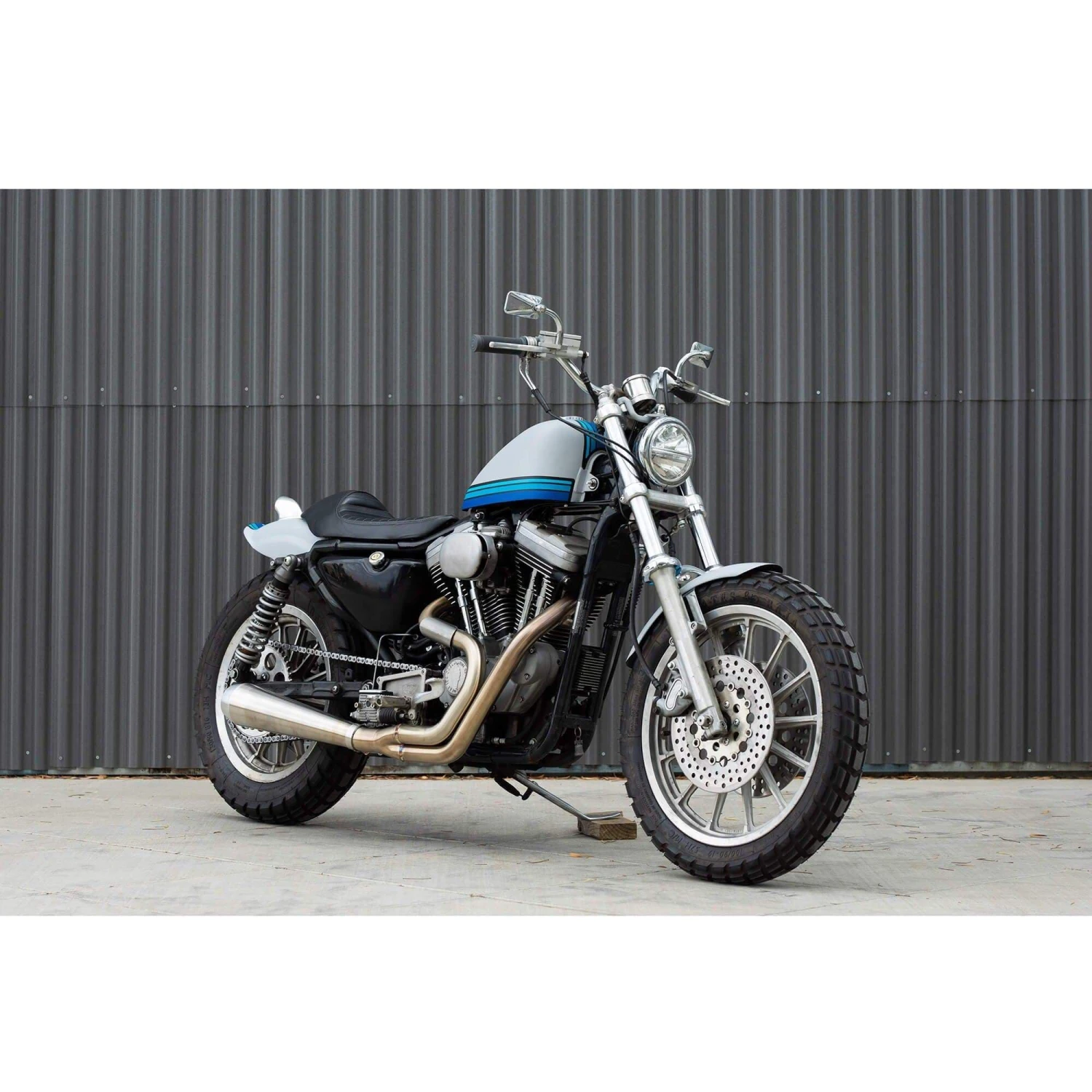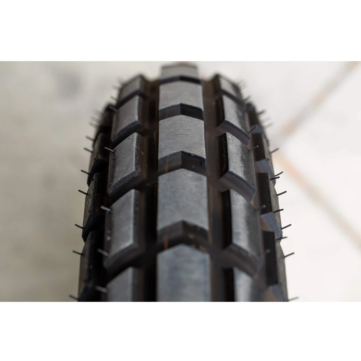Here’s a scrambler tire right on the tracks of the legendary Goodyear Grasshopper, capable of doing it all: ample grip on the road with a tread pattern that will get you out of the deepest ruts off the road.