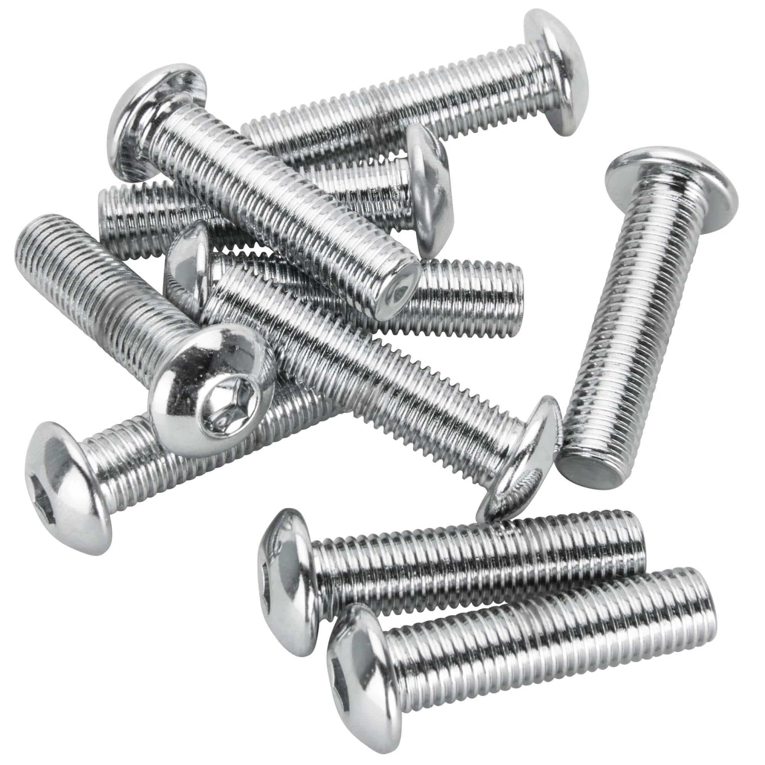 CHROME PLATED BUTTON HEAD ALLEN BOLT Size: 5/16-24 x 1-1/4 Bag of 10 pieces. Made in the USA.