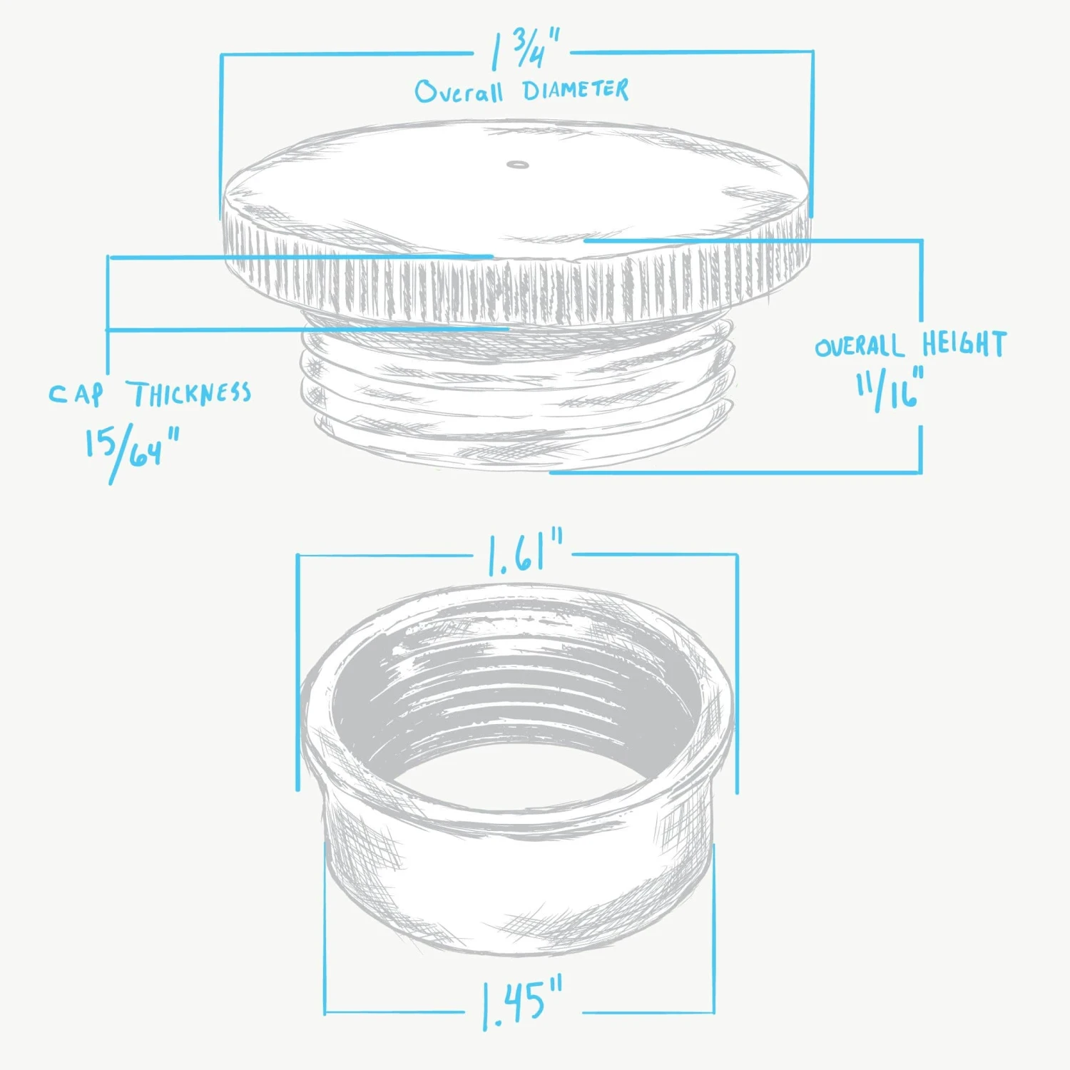Includes a weld-in mild steel bung made for Lowbrow Customs gas filler caps. Just weld-in the bung, thread the cap in and go! These universal filler caps are meant to be used for gas tanks on custom motorcycles, hot rods, or anything else. Lowbrow filler caps fit the maxim ‘form follows function’; they are all business. Machined out of solid brass, these vented caps are 1-5/16″-12 thread and the Buna-N O-ring seal is gas and oil resistant and keeps your fluids contained, leak-free. This is a vented cap of our own unique design. The underside of the cap is milled out and a .75″ diameter, sintered bronze breather disc is inserted and then held securely in place with a snap ring. The breather disc allows air to pass both ways while limiting the passage of oil or gas. Lowbrow filler caps fit our weld-in filler bungs for custom applications, as well as Cycle Standard, Mooneyes & British Standard brand
