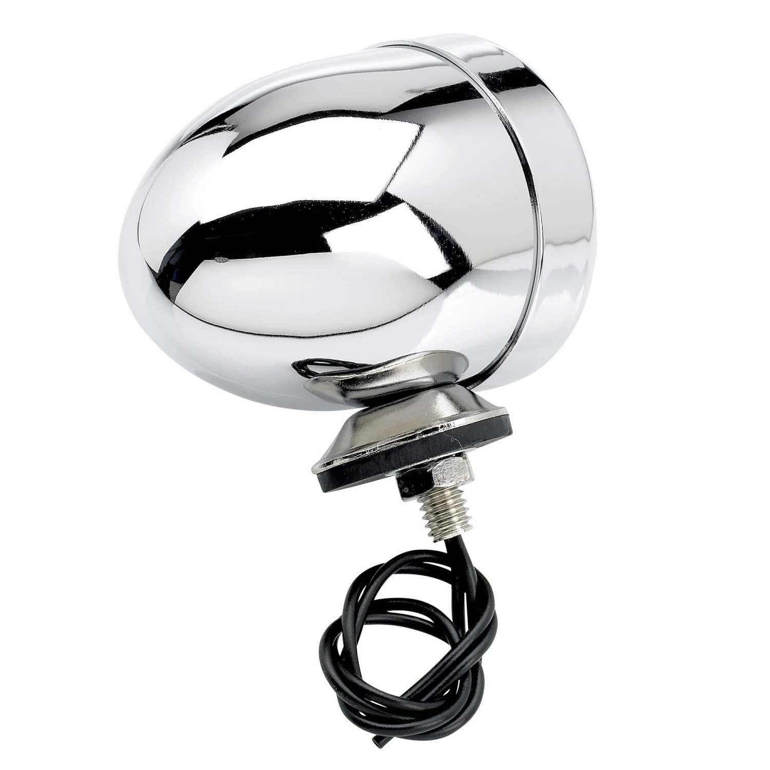 This chrome plated bullet light has an acrylic lens and a 12 volt bulb with dual filament for use as a running light and / or turn signal indicator light. 2-1/4″ diameter by 3-1/2″ long. Sold individually.