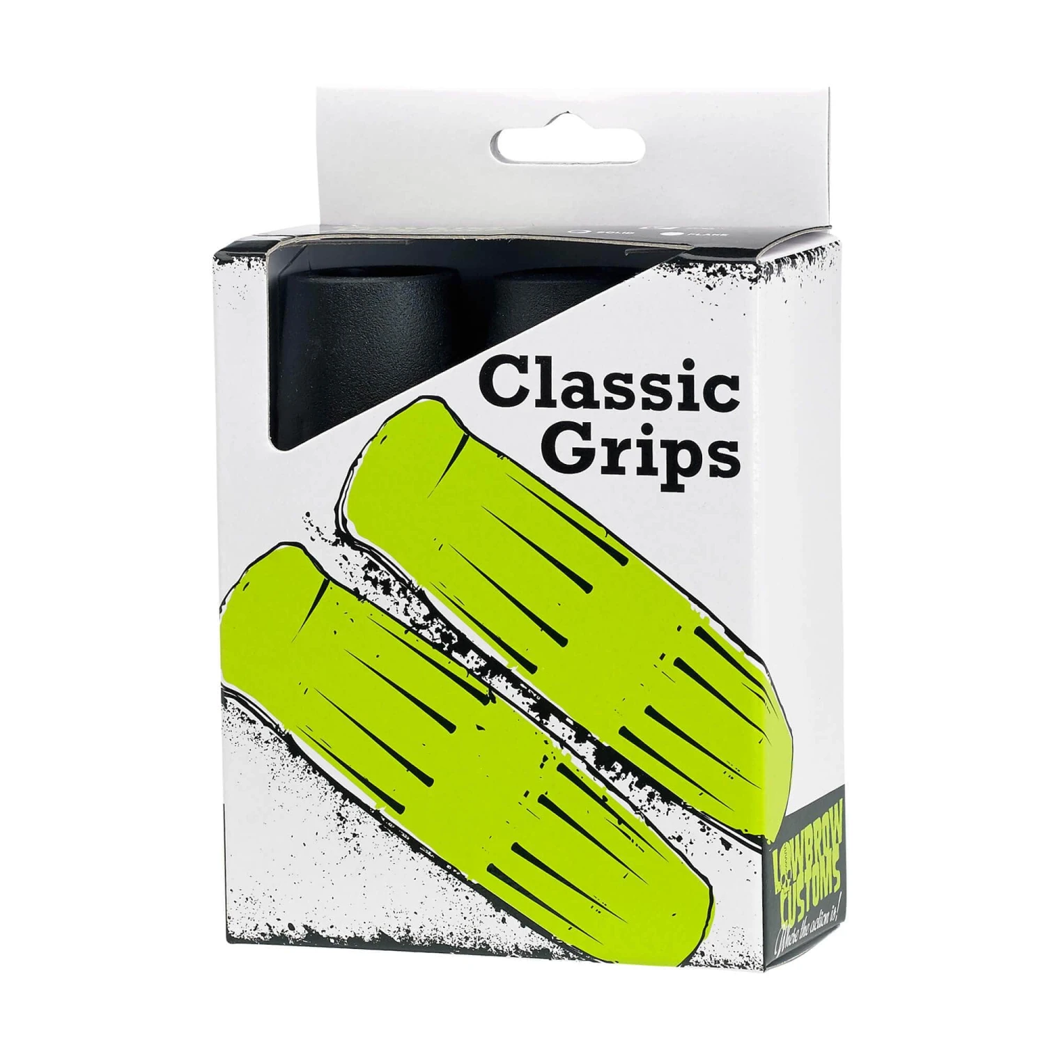 Black, for 1 inch handlebars. As the name implies, Classic Grips from Lowbrow Customs are a timeless design that look at home on vintage and modern motorcycles alike, be it a chopper, bobber, cafe racer or any other fringe of the motorcycle scene. Styled after vintage Harley-Davidson coke bottle grips that were made for stock internal throttles but updated to fit modern motorcycles. This comfortable, radiused grip made out of Krayton rubber is available in several popular colors and is sold per pair. It is important to choose the proper size grips for your motorcycle. Grips are available in 1 inch (the size needed for all Harley-Davidsons and other ‘cruiser’ style motorcycles) as well as 7/8 inch (common on many vintage British, European and Japanese motorcycles such as Triumph, Honda and Yamaha). Please note that any pair of motorcycle grips has two different inside diameters. The grip for the left side (as if you were sitting on the bike) of the handlebar has a smaller diameter, and the right side grip has a larger inside diameter to fit over your throttle tube. Grips are manufactured to have a tight fit, you don’t want one sliding off while taking a corner or twisting the throttle! They are easy to install using a bit of WD-40 to help get them in place. Alternatively, you can use compressed air as seen in our