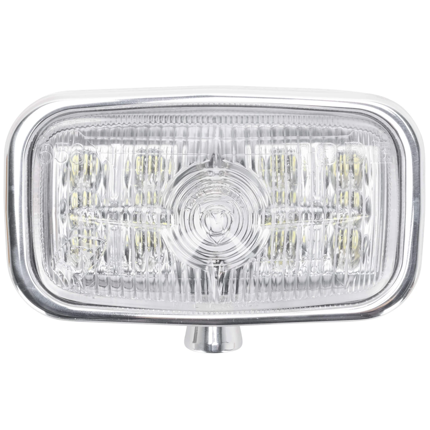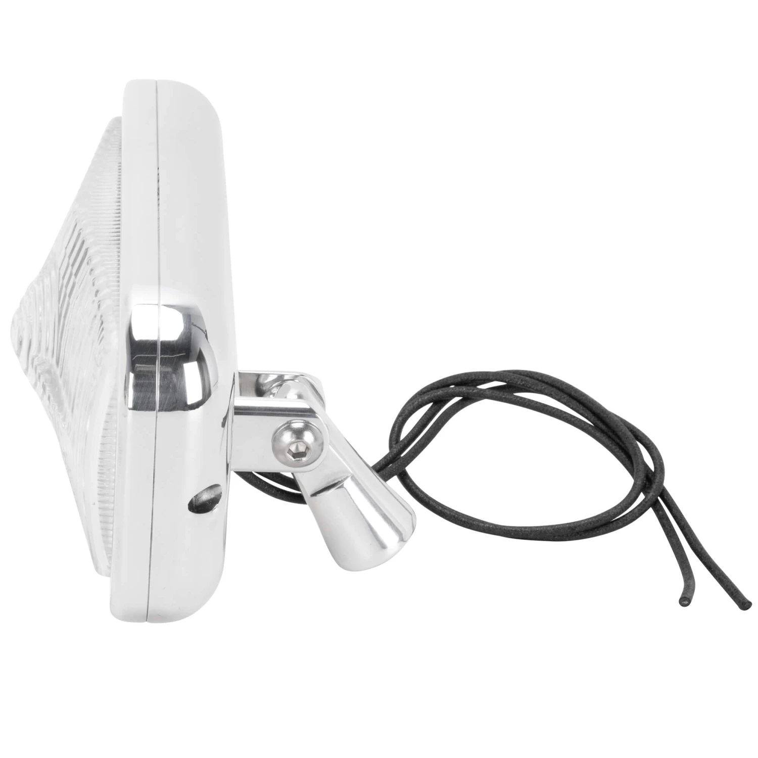 FNA’s latest addition to our light products is this rectangular light made from a vintage Ferrari GT250 fog lens. It has 4000 lumens of output with a high/low two wire hookup. Lenses are cast in house and the housings are machined locally. The light can be mounted vertically or horizontal by simply taking the mounts bolt loose and rotating the block 90 degrees. This light will hold up way better than the original stamped metal vintage lights that fall apart when the rivets loosen up!