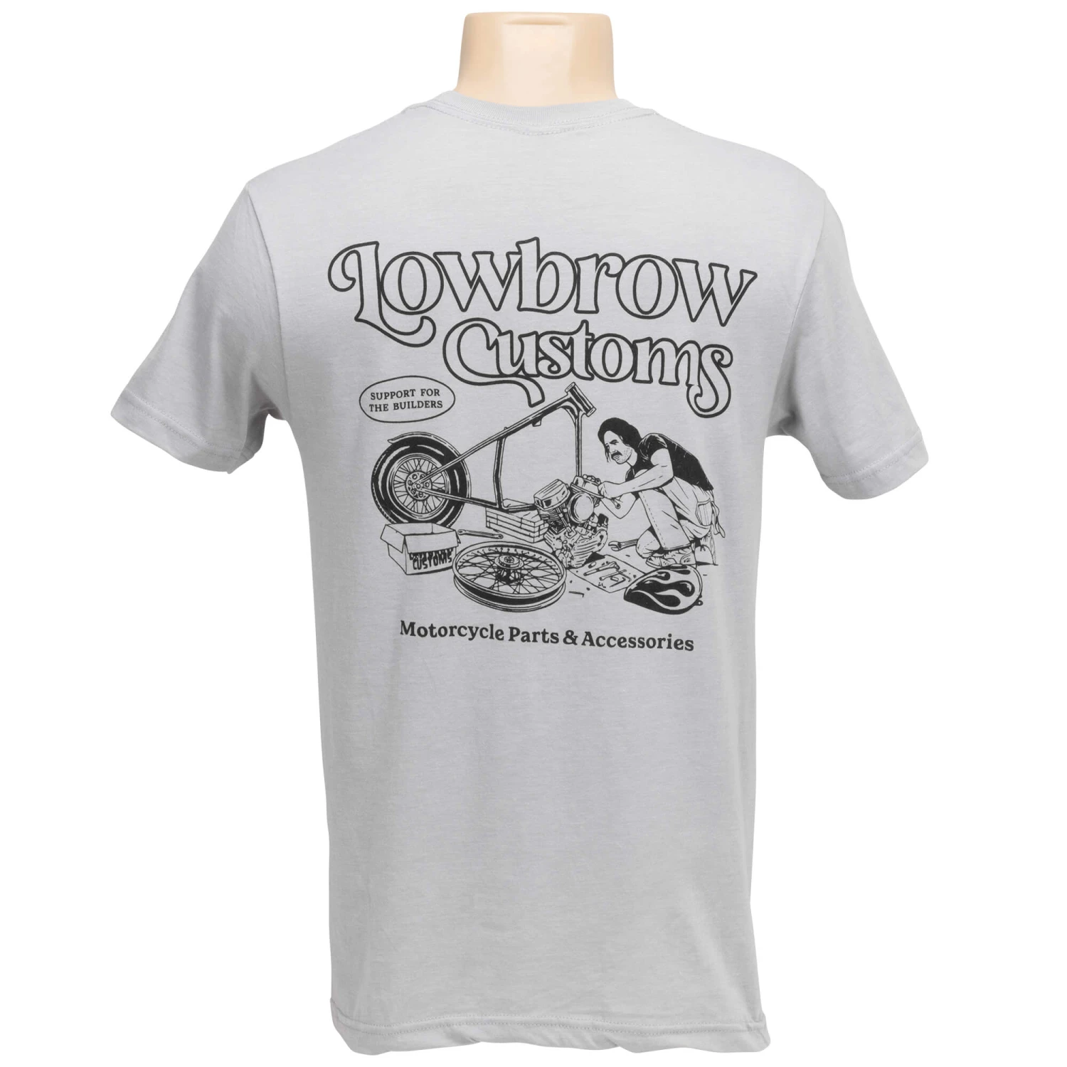 Full back imprint, with a left chest logo. Premium, soft, 100% cotton grey t-shirt for that vintage look and feel.
