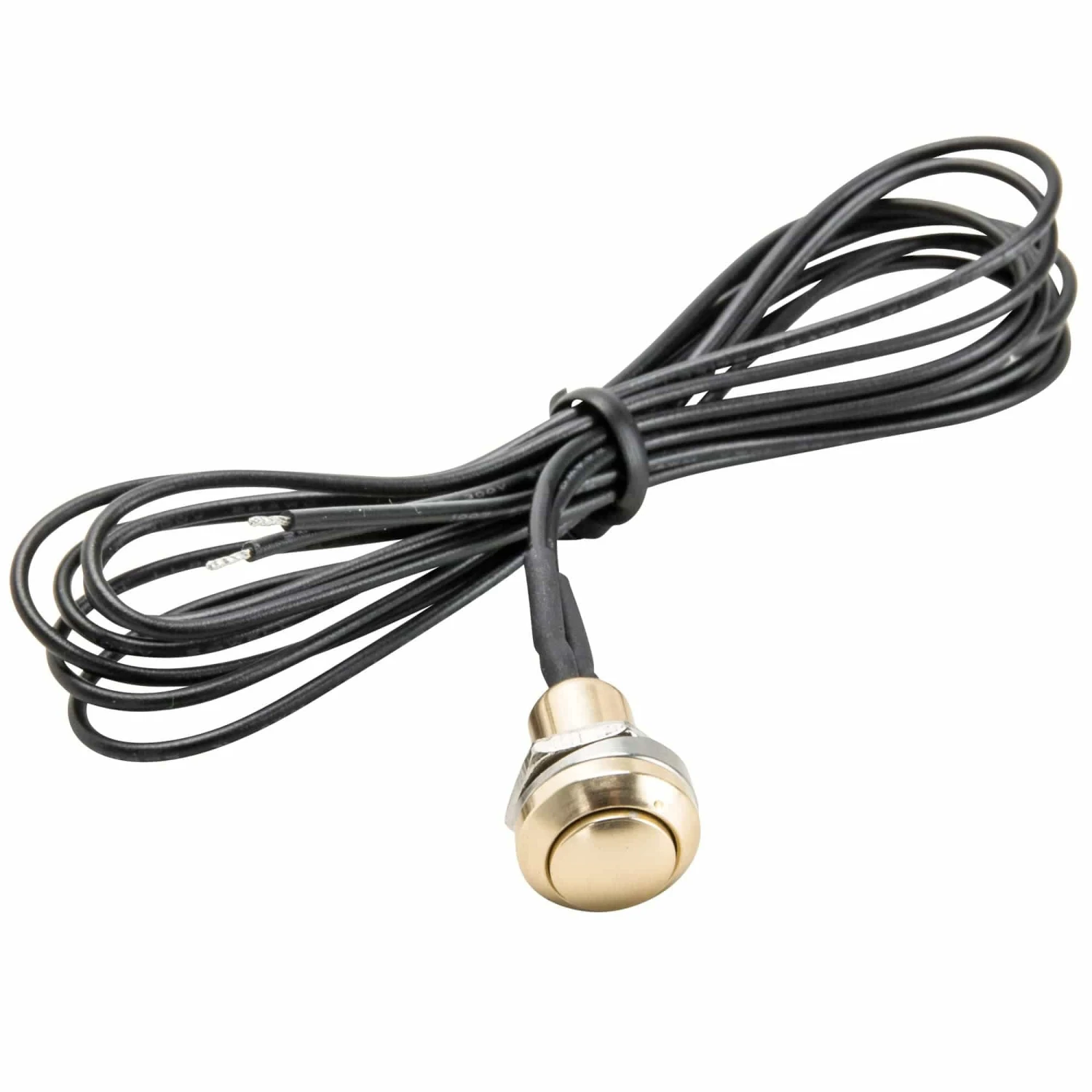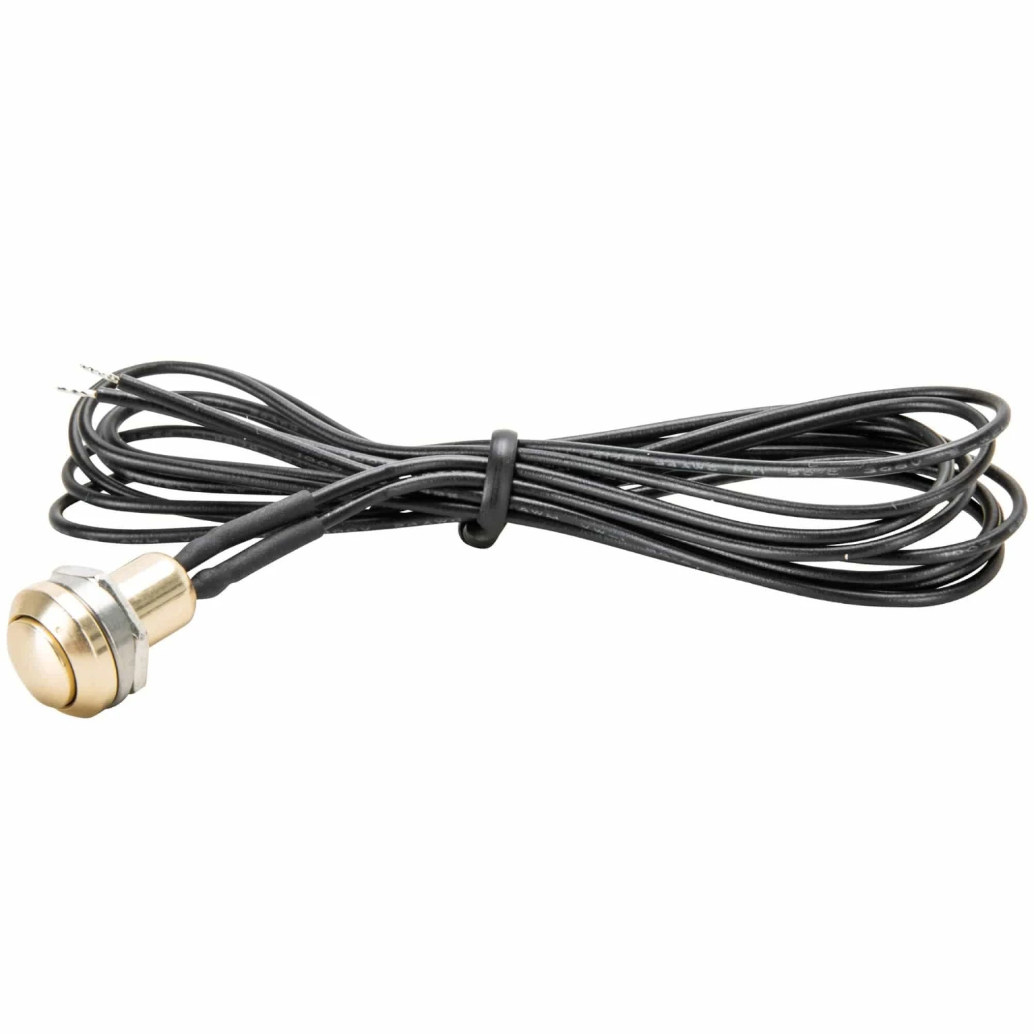 This universal mini push button switch is ideal for use on your handlebars to keep your kit clean. It can also be used on a battery box, gusset, top motor mount, or anywhere you can stash it. The 12 mm (.47″) round push button switch includes a special radius-shaped spacer to allow clean mounting in handlebars. Great for turn signal, starter, horn, stop or hi-low operations (must be used with a relay). Includes two 20″ wires; installing requires 9/32″ drill bit and 5/16″ UNF tap. Note that this is a momentary switch, not an on/off switch.