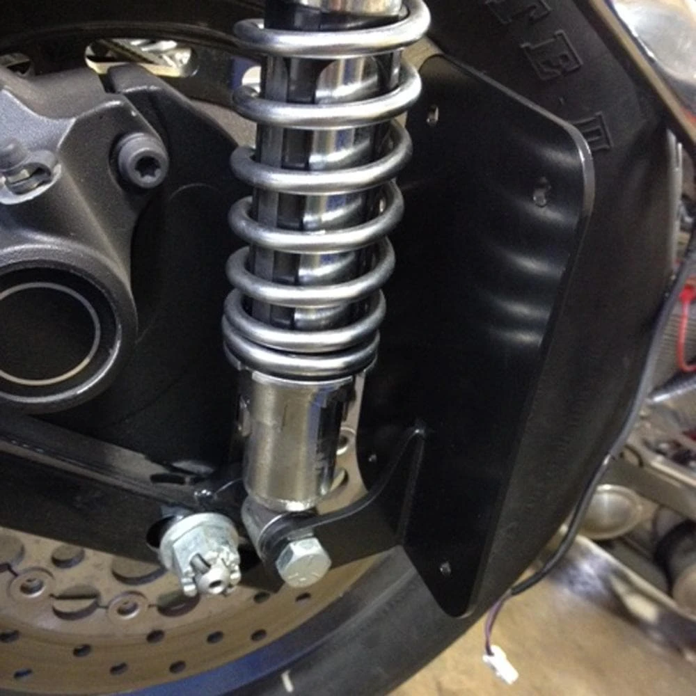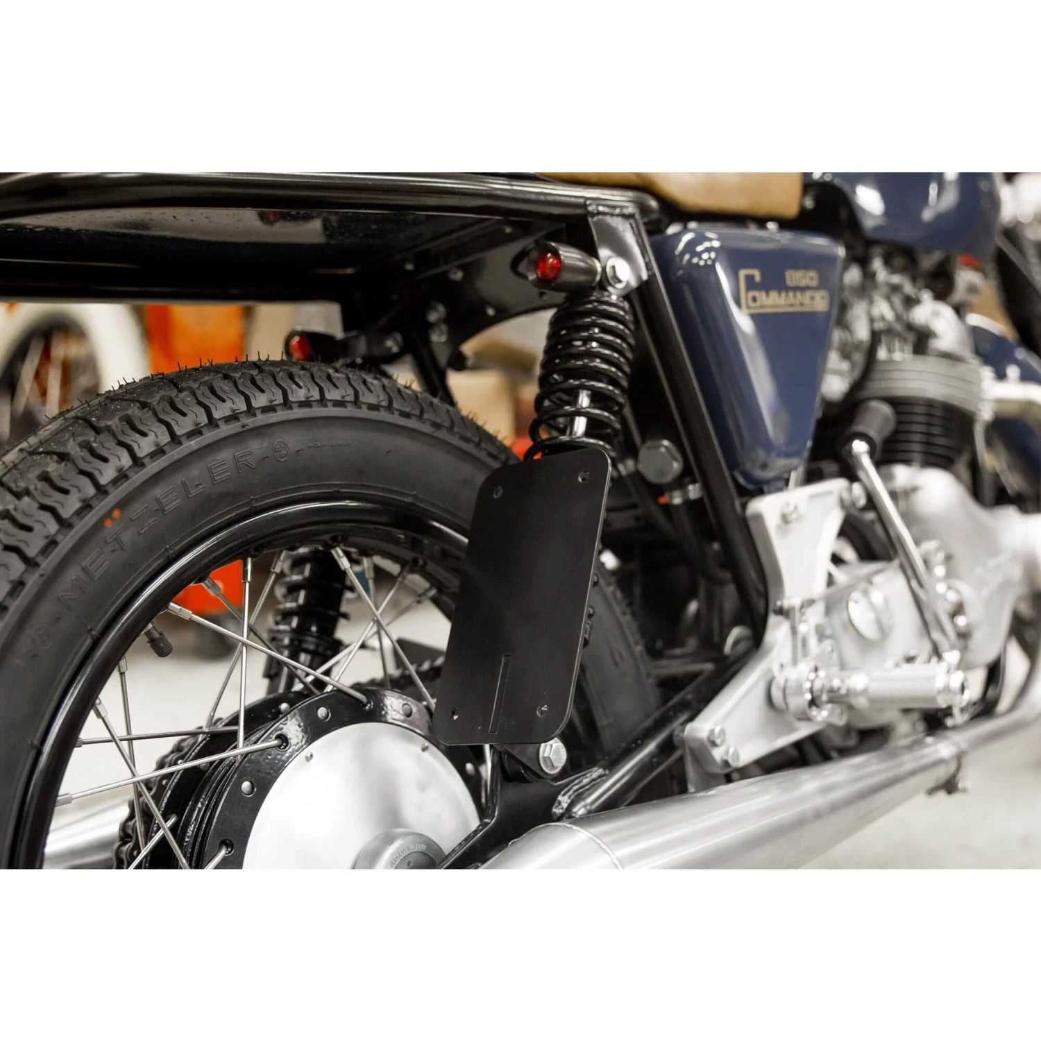 This Shock Mount Motorcycle License Plate Bracket from Gasbox bolts to your lower 1/2″ diameter shock bolt allowing an easy relocation of your license plate. This