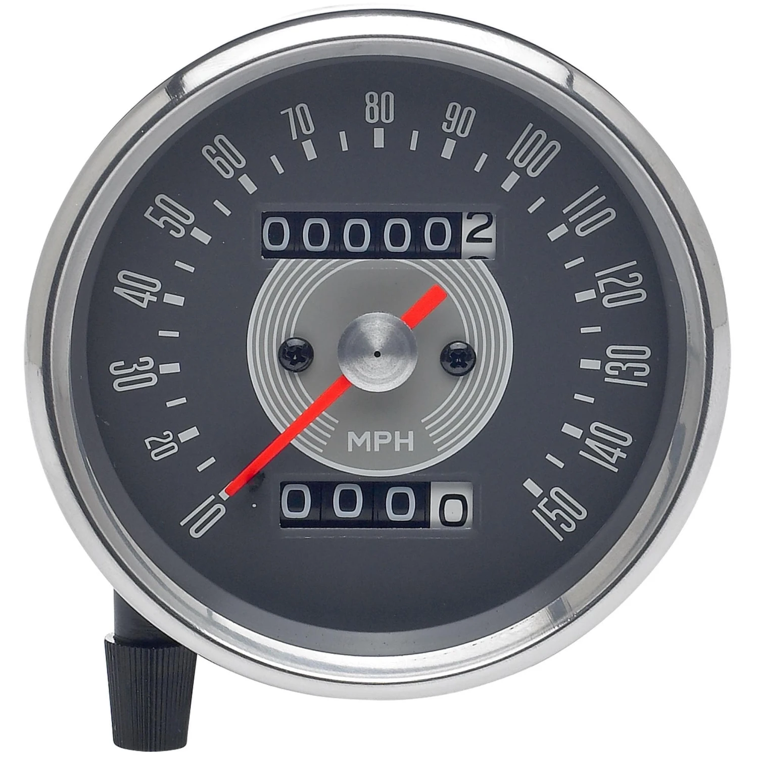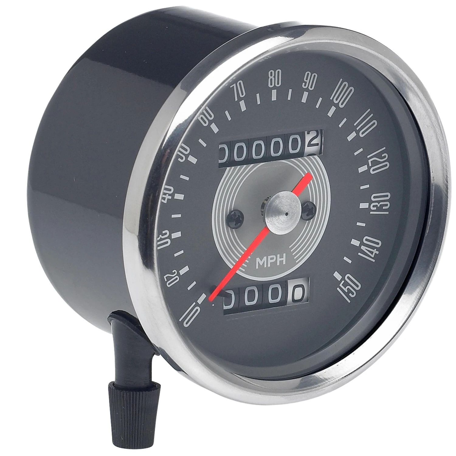 These reproduction Smiths Grey Face Speedometers are a replacement for 650 cc. Triumph motorcycles with 1 to 1.25 ratio, stock part number 58-43630. It also has a 12 volt back light to illuminate your speedo gauge; bulb comes installed. A nice quality speedometer ready to bolt in place and screw your cable on and go, and at a fraction of the cost of a rebuild original. Fits 1966-1970 Triumph Motorcycles.