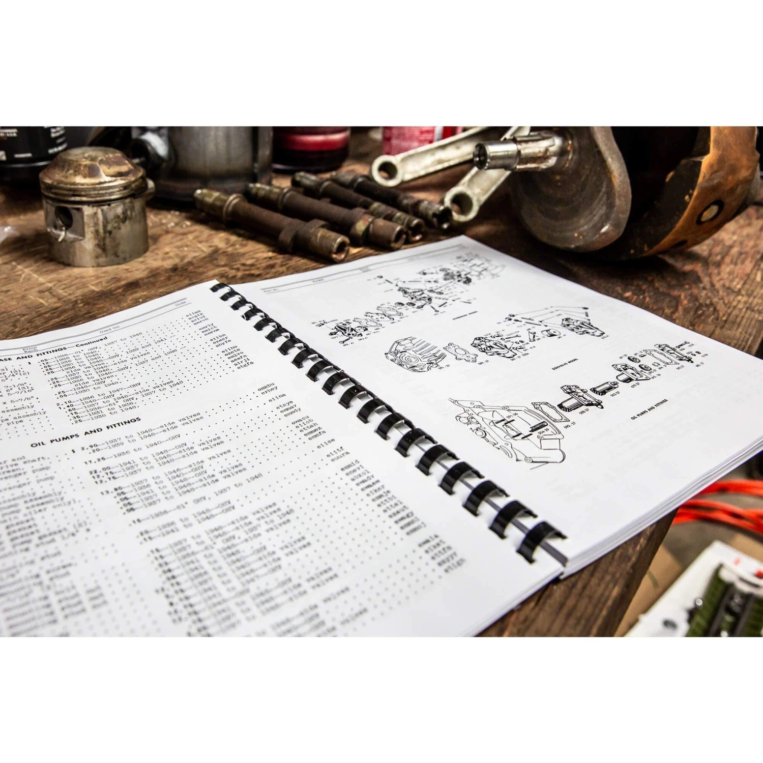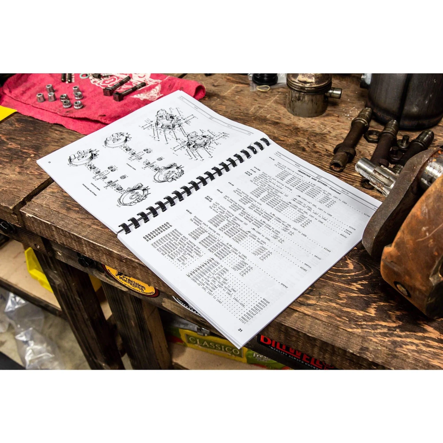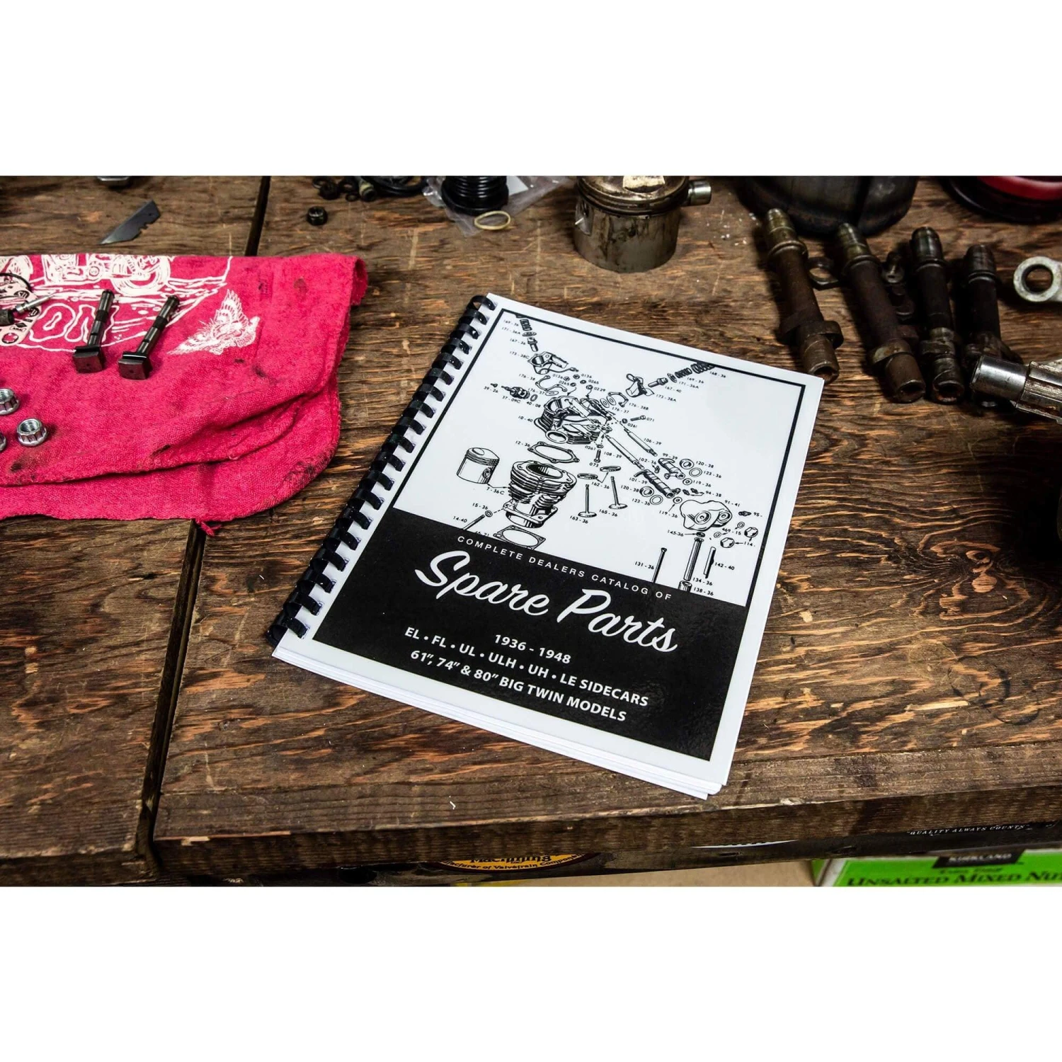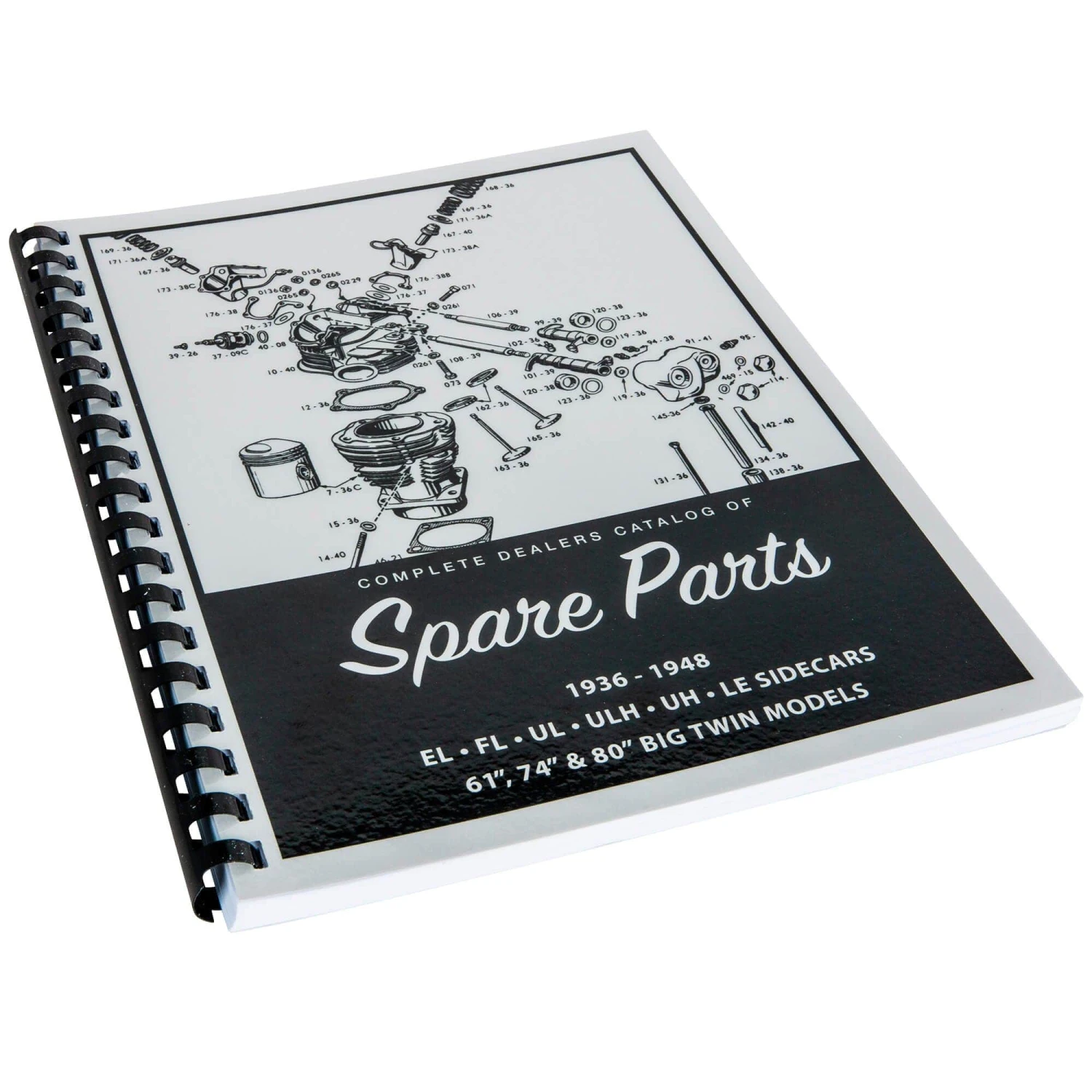 This is a reprint of the original factory spare parts manual for 1936 to 1948 Harley-Davidson twin models including Knucklehead, early Panhead, and Big Twin UL Flatheads. 152 pages. These books are an indispensable resource for restoring or working on your vintage Harley! This spare parts book is comb-bound and has laminated front and rear covers for added durability. The binding allows you to fully open the book and set it down without flipping shut on you while working in your shop. Made in the USA. This book covers: