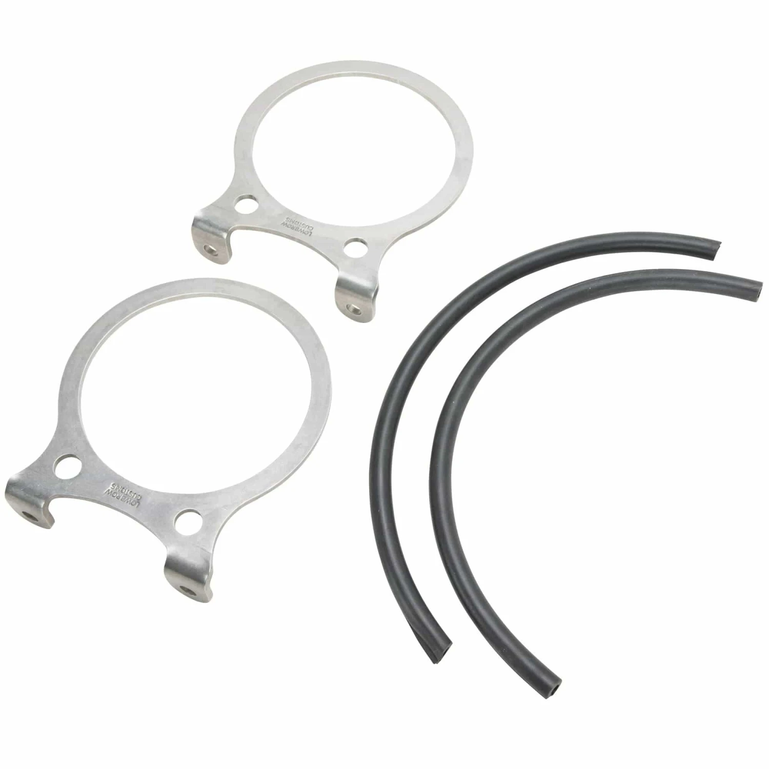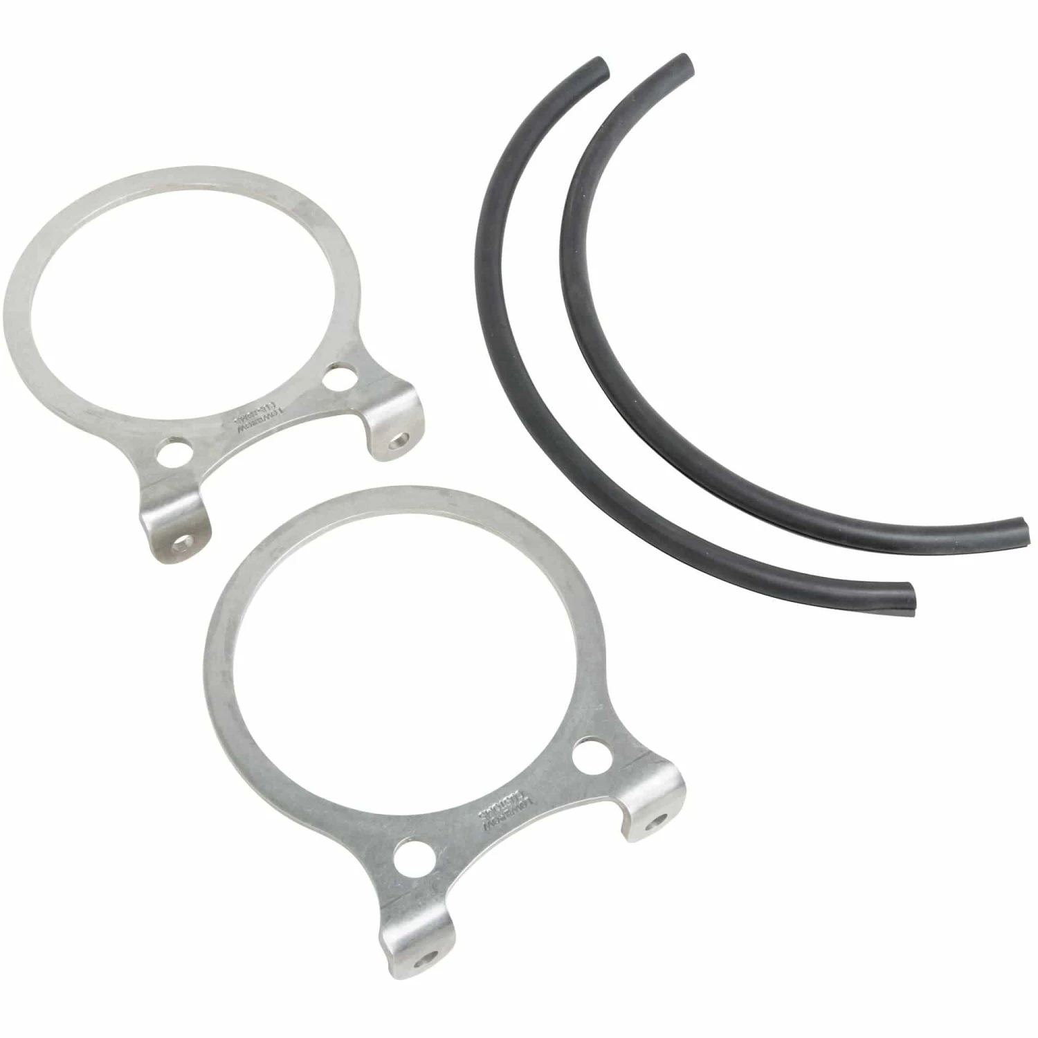 have been around for decades and give a timeless look to your motorcycle. The cast aluminum mounting brackets, however, are prone to cracking. If you want a bulletproof mounting bracket to go with your Mooneyes oil tank look no further. These 3/16 inch thick, tumbled stainless steel brackets come with EPDM rubber tubing, pre-slit and ready to install. Tougher than rubber or silicone, the EPDM tubing keeps your oil tank cushioned, regardless of how hard you ride or how rough the road. These brackets can be installed on your motorcycle frame by bolting them to welded tabs or bungs in a variety of configurations. Made in the USA.