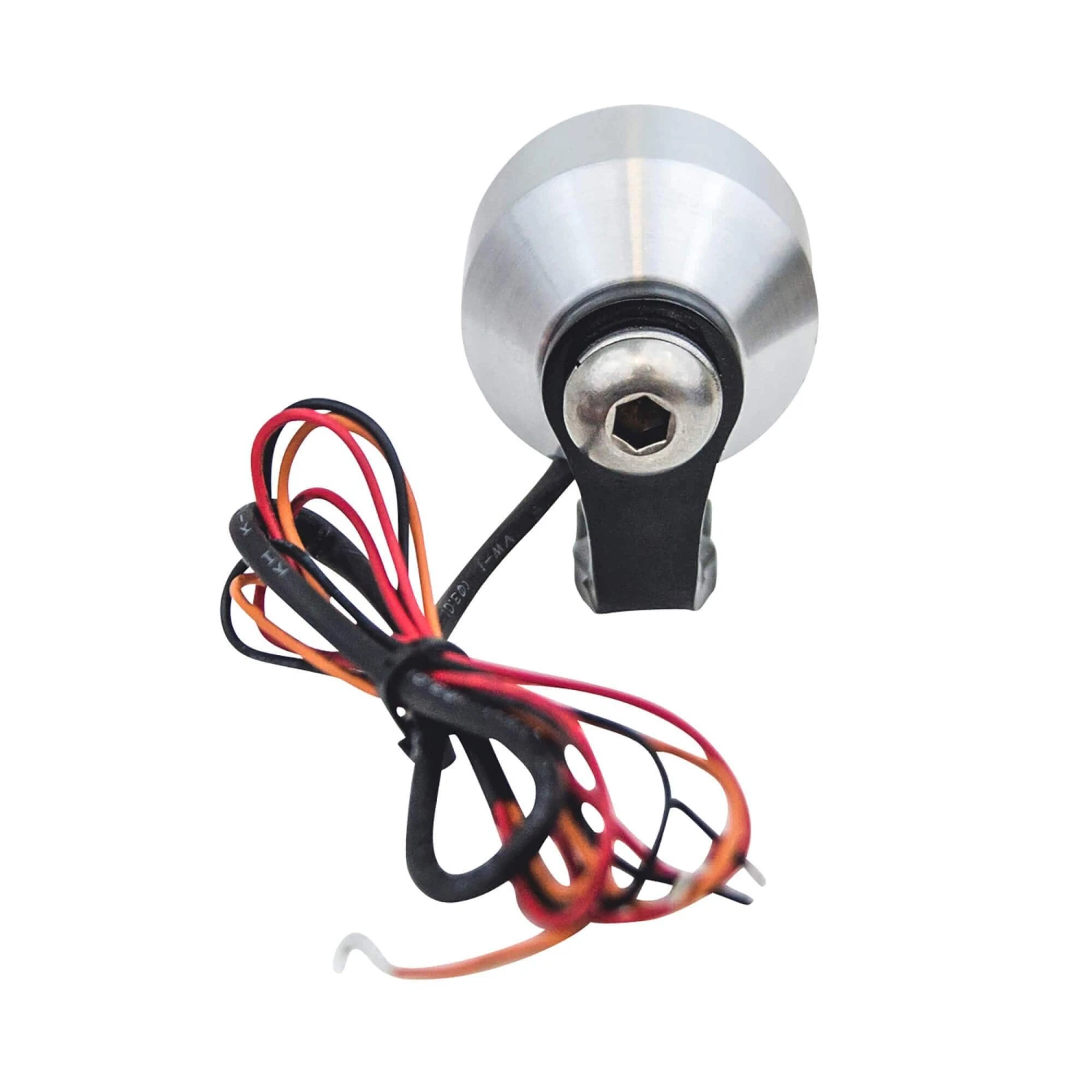 All “Speedster” lights are crafted in house, by hand. These dual function 1.25″ LED’s act as a brake light and running light. The size of the housing is 1-1/2″ diameter by 1-1/16″ long. The wires exit through the bottom of the housing. All lights come with a stainless steel lock washer, 3/8 bolt for mounting, and universal mounting bracket. Made in the USA.